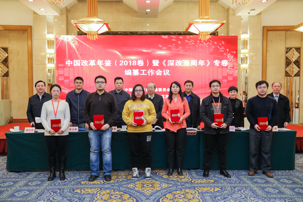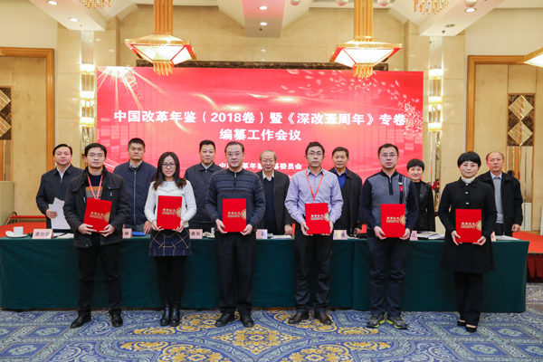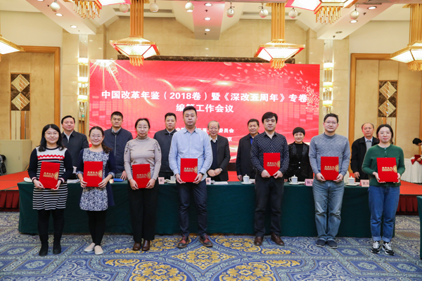 2018年1月12日,中国改革年鉴(2018卷)暨《深改五周年》专卷编纂工作会议在京召开。会议深入学习贯彻党的十九大精神和习近平总书记全面深化改革的重要思想,总结了《中国改革年鉴》2017卷编纂工作,表彰了年度先进单位及个人,并部署了《深改五周年》专卷编纂任务。中国改革年鉴编纂委员会主任、全国人大常委、人大财经委副主任委员、中国经济体制改革研究会会长、国家发展改革委原副主任彭森,中国改革年鉴编纂委员会副主任、国家发展改革委体改司司长徐善长,国家发展改革委办公厅副巡视员孙卫红,国家发展改革委政研室新闻处处长李玉举,《中国改革年鉴》副主编、中国经济体制改革杂志社总编辑史克毅,中国改革年鉴编辑部主任、中国经济体制改革杂志社社长潘治宏出席了本次会议。中国改革年鉴编纂委员会副主任、中国经济改革研究基金会理事长宋晓梧主持会议。来自国务院各部委及地方改革办、地方发展改革委共160余位代表参加了会议。