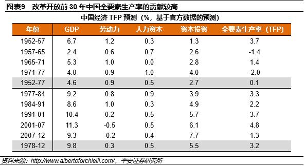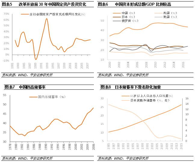 实物资本积累快是因为回报率高。改革开放前30年固定资产回报率高的原因有两点:第一,内需和外需都较强,没有形成过剩产能。内需强体现在前30年中国的GDP增速每年约10%,外需强体现在前30年全球经济增速每年平均在4%-5%左右。第二,企业融资成本低,虽然投资率高,但中国储蓄率更高,可以为投资提供融通。这就导致中国投资基本上不用借外债,与拉美国家存在显著区别。