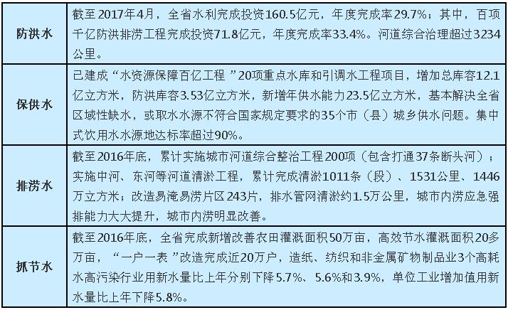自2013年提出“五水共治”战略目标以来,短短几年便取得了显著的成效。下表总结了截至2017年“五水共治“的部分主要成效。(见下表)