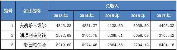 图表2 世界主要钢铁企业的营业收入(单位:亿元)