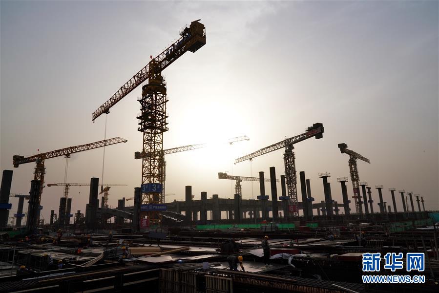 这是3月18日拍摄的京雄城际铁路雄安站施工现场。 新华社记者 牟宇 摄