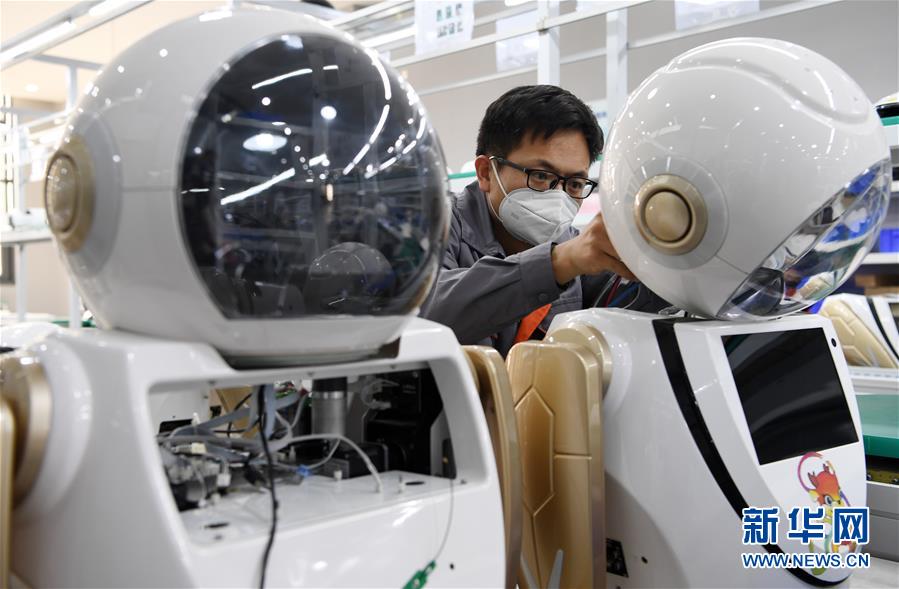 在甘肃张掖市甘州区一家机器人制造企业,工作人员在改装医用机器人(3月23日摄)。 新华社记者 范培珅 摄