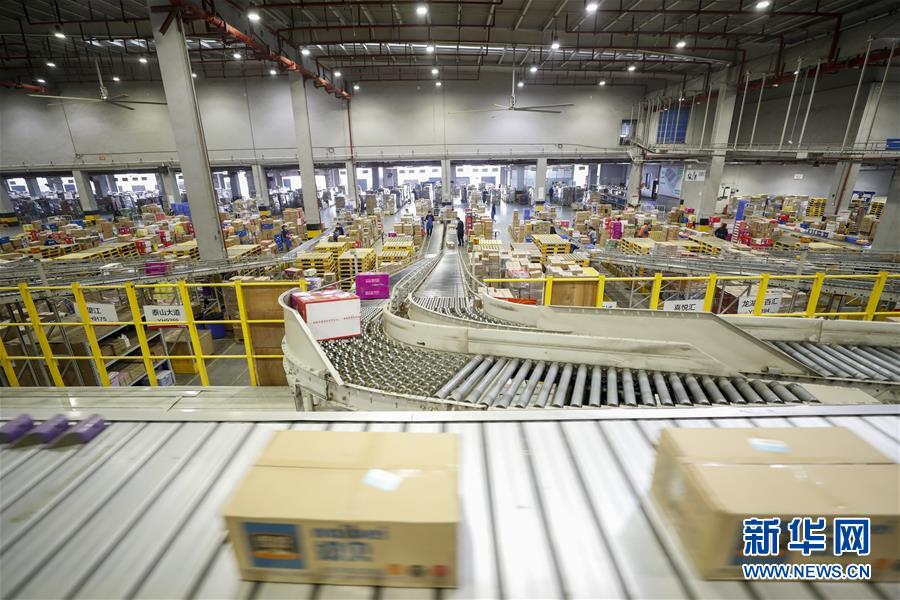 在重庆国际物流枢纽园区的永辉物流配送中心常温库,自动化分拣系统分发永辉超市各门店所需的货品(3月16日摄)。 新华社发 (黄伟 摄)