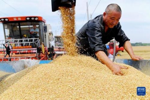 河北省衡水市阜城县崔家庙镇前砖门村的农民在麦田收获小麦(6月13日摄)。新华社记者 朱旭东 摄