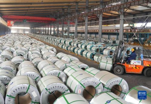 河北省钢铁重镇迁安市一家彩涂钢板企业的工人在生产车间工作(12月11日摄)。新华社记者 杨世尧 摄