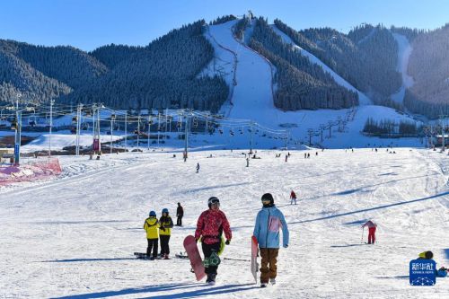 在位于乌鲁木齐的新疆丝绸之路国际度假区,雪友在雪道滑雪(12月10日摄)。新华社记者 王菲 摄
