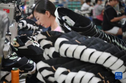 在位于福建省泉州市的鸿星尔克集团鸿荣轻工公司车间,工人在制鞋生产线上作业(7月30日摄)。泉州市是我国重要的制造业基地,民营企业较多。新华社记者 宋为伟 摄