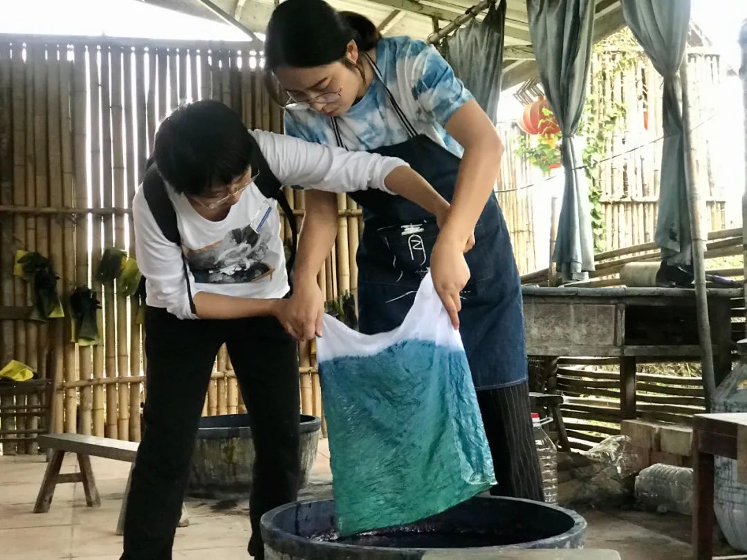 青黛蓝染设计工作室向游客传授蓝染工艺技巧