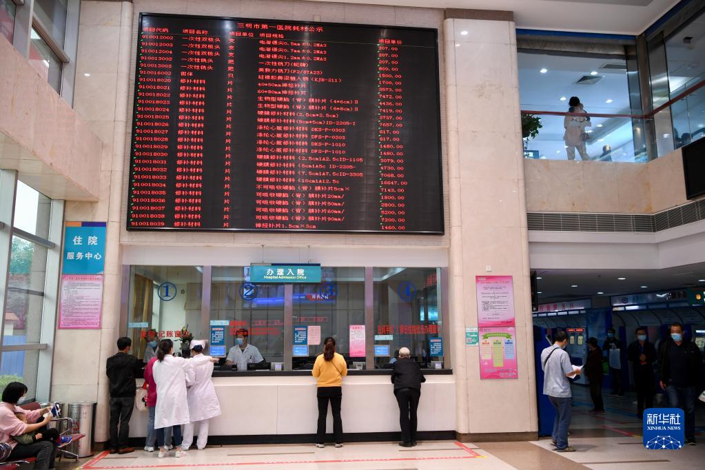 福建省三明市第一医院轮播公示药品耗材价格(2020年11月24日摄)。新华社记者 姜克红 摄