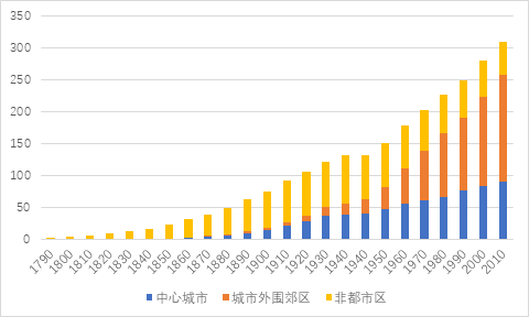 还有乡村和小城镇,在郊区化过程中这些新形态开始快速增长。