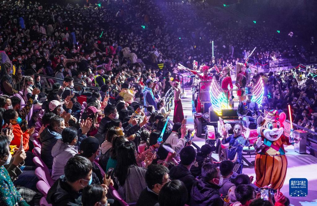 游客在广州长隆旅游度假区游园看马戏表演(2022年12月31日摄)。新华社记者 刘大伟 摄