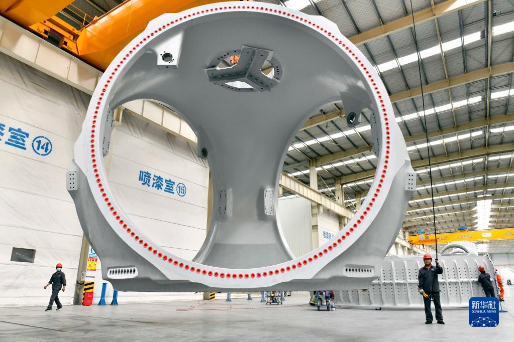 工作人员在山东省惠民县风电装备产业基地一涂装车间内作业(2022年6月7日摄)。新华社记者 郭绪雷 摄