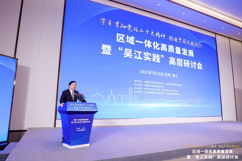 中国经济体制改革杂志社社长、地方改革创新研究院院长潘治宏代表主办单位致辞,苏州市吴江区委书记李铭代表承办单位致辞。苏州市委常委、常务副市长顾海东参会并致辞。