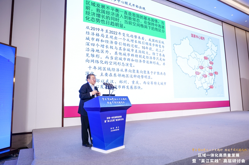 孔泾源作了题为“创建地区一体化高质量发展的体制环境”的演讲。他认为,要从市场经济的底层逻辑来构建区域一体化高质量发展的体制机制;按照国家现代化战略来定位区域一体化高质量发展的目标体系;要在大国博弈常态化、国际变局中来确定区域一体化高质量发展的战略和策略。要发挥区域一体化高质量发展有效市场、有为政府的双重优势。区域一体化还包括基础数据开放以及社会治理一体化、社会财富共享一体化等问题。针对区域之间相互促进发展,他提出,对发达区域,新的产业链可以跨区域配置,实现区域性横向整合;实现一体化内循环发展,在全国建立统一大市场中找到区域一体化高质量发展的新增长点。