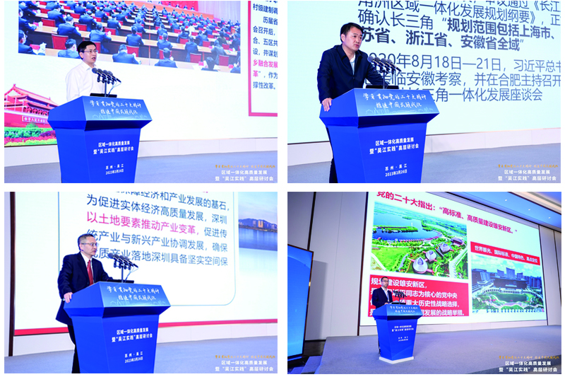 国家发展改革委体改所企业室副主任李红娟代表中国经济体制改革杂志社地方改革创新研究院课题组发布了“长三角一体化发展国家战略下‘双优势’转化的吴江路径”课题研究成果。四川省委改革办专职副主任宋光辉就“四川省探索经济区与行政区适度分离改革,打造区域协作高水平样板”,安徽省委改革办专职副主任李德贵就“主动靠上去,深度融进去,为推进长三角更高质量一体化发展贡献安徽力量”,深圳市委改革办副主任孙华明就“深入推进要素市场化改革,打造粤港澳大湾区核心引擎”等主题,河北雄安新区住房管理中心主任陆长明以“雄安新区住房制度改革探索与实践”为题作了地方经验交流。