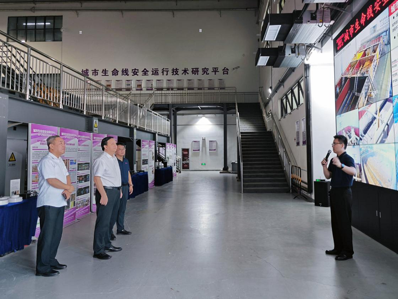 在清华大学合肥公共安全研究院,听取了研究院在公共安全科技创新与应用实践方面的情况介绍,观看了城市生命线工程安全运行监测系统和系列实验平台。