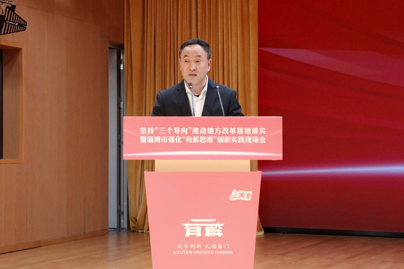 杨旭东在致辞中表示,进入新征程要深入学习贯彻习近平总书记关于全面深化改革重要论述,紧紧围绕城市转型发展,以改革谋发展之策。淄博的改革实践始终围绕以人民为中心的发展思想,在全省率先启动高品质民生促进共同富裕三年行动,探索开展一老一小、一壮一弱民生领域系统集成改革。群众满意度全省排名由2020年的第十一位稳步上升到第五位;始终以改革之力提治理之效,城市综合信用指数排列进入了全国前十,成功创建全国社会信用体系建设示范区;始终以改革之力促生态之优,把着力点放在加强系统集成协同高效的改革方法论上,坚持将政治生态、产业生态、市场生态、社会生态、自然生态等作为一种生态集成打造。杨旭东表示,淄博的改革要向难度攻坚、向广度拓展、向深度进军,以淄博改革“一域之光”为全国改革全局添彩。