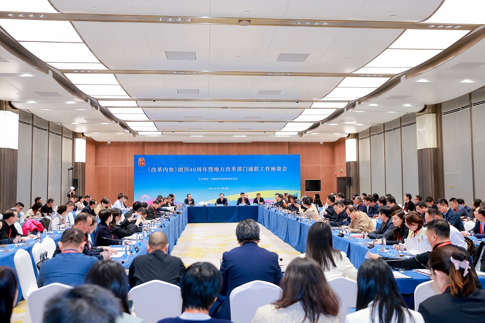 2023年12月20日,中国改革(2023)年会前夕,《改革内参》创刊40周年暨中国经济体制改革杂志社地方改革部门通联工作座谈会在福建厦门召开。中国经济体制改革杂志社社长、地方改革创新研究院院长潘治宏就杂志社“发展历程和新征程新使命”作工作报告,来自福建、湖南、河南、陕西、甘肃、辽宁等地的改革部门负责人发言,就如何开展通联工作,“共有、共办、共用”杂志社平台,推动改革创新落实进行了深入座谈。副社长蔡文武汇报了杂志社2023年通联工作进展情况,通联部主任侯新宇宣读了2023年度中国经济体制改革杂志社地方全面深化改革宣传工作先进单位、先进个人名单。会议由杂志社副总编辑刘学军主持,来自各地、各级改革部门负责人和代表参加会议。