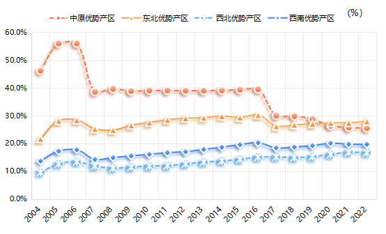 图3 2004年以来我国肉牛主要产区产量比重变动情况